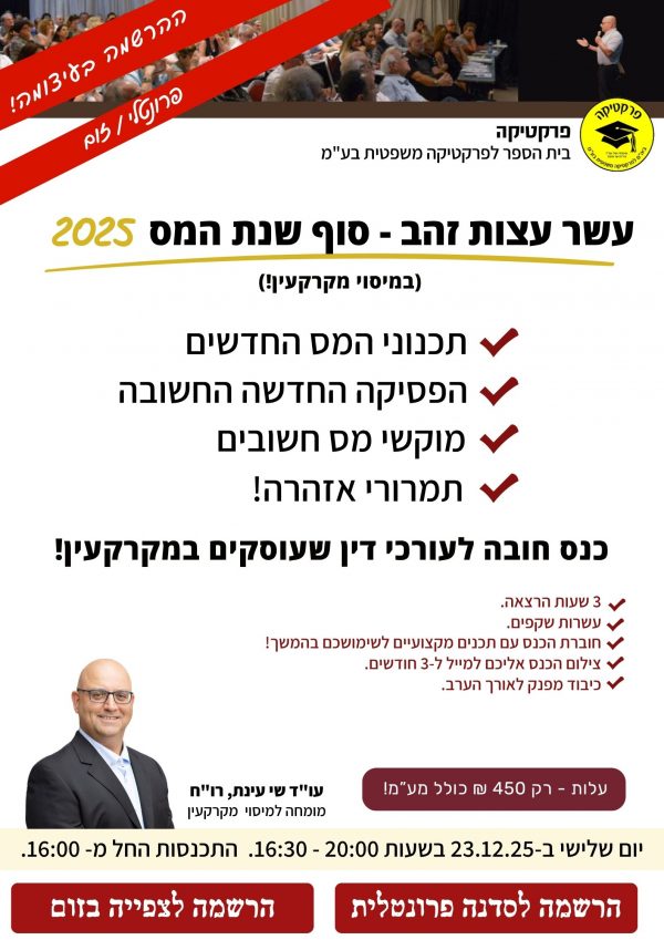 להרשמה לסדנא הפרונטלית יש ללחוץ על הקישור – עשר עצות זהב – סוף שנת המס 2025– פרונטלי | פרקטיקה (practika.co.il)
